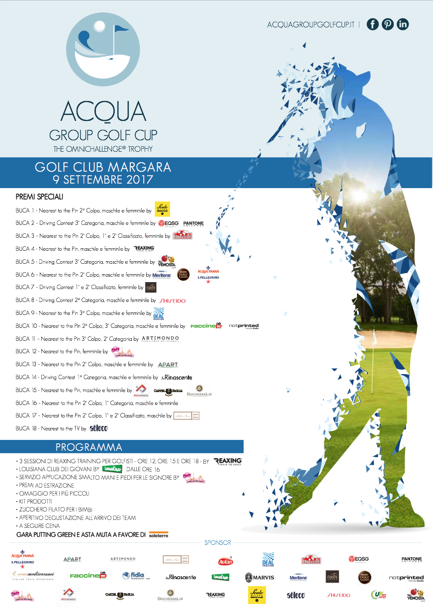Acqua Group – società di comunicazione integrata guidata da Davide Arduini e Andrea Cimenti – lancia la seconda edizione del torneo di golf che prende il suo nome. A seguito del notevole successo riscosso di termini di presenze di sponsor e di...