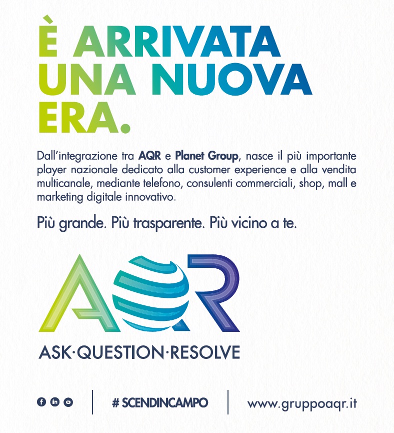 Nato dall’integrazione societaria tra Planet Group e AQR, Gruppo AQR, con HQ a Milano e 17 sedi operative in Italia, è il primo player nazionale specializzato nella vendita multicanale di servizi (teleselling, rete vendita, negozi, digital marketing, servizi di telecomunicazione, Internet, energia, finanziari e assicurativi) e nella customer experience, a capitale interamente italiano.