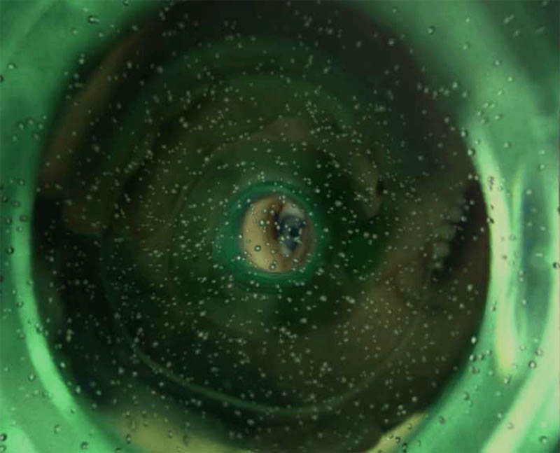 riprodotto il movimento e l’effetto che avrebbe avuto la macchina da presa. Il viaggio è finito: la macchina da presa riprende dal fondo della bottiglia l’occhio